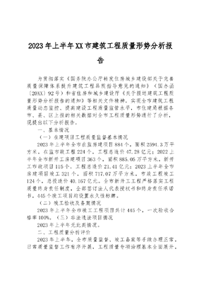 2023年上半年XX市建筑工程质量形势分析报告.docx