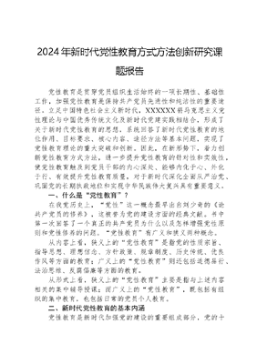 2024年新时代党性教育方式方法创新研究课题报告.docx