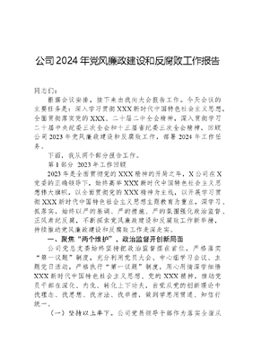公司2024年党风廉政建设和反腐败工作报告.docx