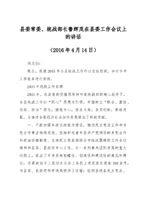 县委常委、统战部长鲁辉茂:在县委工作会议上的讲话.doc