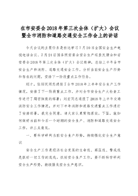 在市安委会2018年第三次全体(扩大)会议暨全市消防和道路交通安全工作会上的讲话.docx