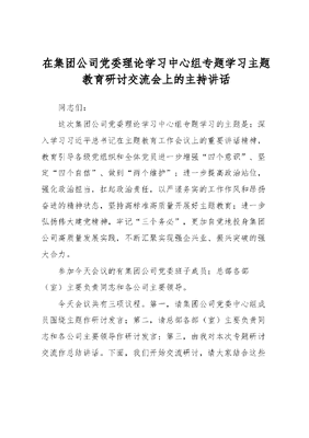 在集团公司党委理论学习中心组专题学习主题教育研讨交流会上的主持讲话.docx