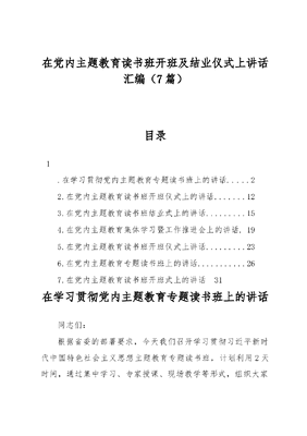 (7篇)在党内主题教育读书班开班及结业仪式上讲话汇编.docx
