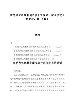 在党内主题教育读书班开班仪式、结业仪式上的讲话汇编4篇.docx