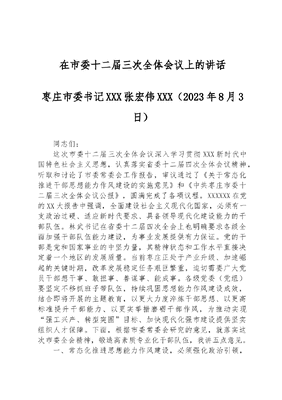 枣庄市委书记张宏伟:在市委十二届三次全体会议上的讲话.docx