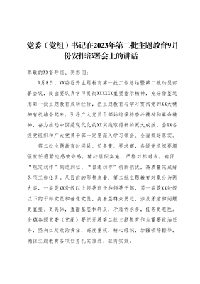 党委(党组)书记在2023年第二批主题教育9月份安排部署会上的讲话.docx