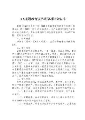 XX主题教育读书班学习计划安排.docx