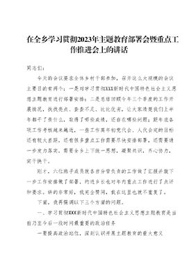 在全乡学习贯彻2023年主题教育部署会暨重点工作推进会上的讲话.docx