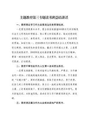 主题教育第三专题读书班总结讲话.docx