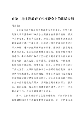 在第二批主题教育工作座谈会上的讲话提纲.docx