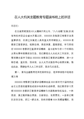 在人大机关主题教育专题读书班上的讲话.docx