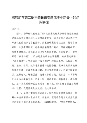 指导组在第二批主题教育专题民主生活会上的点评讲话.docx