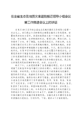在全省生态及地质灾害避险搬迁领导小组会议暨工作推进会议上的讲话.docx