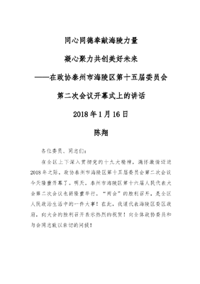 政协泰州市海陵区第十五届委员会第二次会议开幕式上的讲话.doc