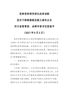 四川省委常委、成都市委书记范锐平:坚持党的领导 深化改革创新 坚定不移做强做优做大国有企业.doc