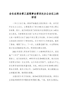 会长在商会第三届理事会第四次办公会议上的讲话.docx