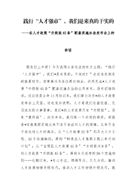 践行“人才强市”,我们是来真的干实的——在人才政策“升级版45条”配套实施办法发布会上的讲话.docx