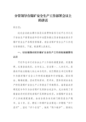 分管领导在煤矿安全生产工作部署会议上的讲话.docx