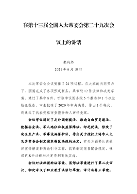 在第十三届全国人大常委会第二十九次会议上的讲话.docx
