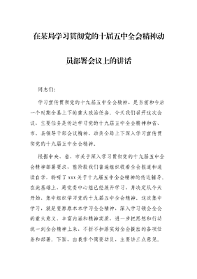 在某局学习贯彻党的十届五中全会精神动员部署会议上的讲话.docx