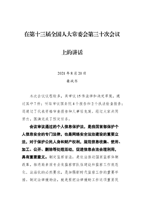 在第十三届全国人大常委会第三十次会议上的讲话.docx