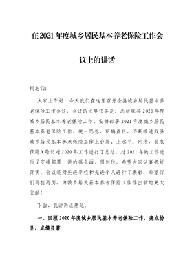 在2021年度城乡居民基本养老保险工作会议上的讲话.docx