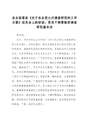 在全面落实《关于在全党大兴调查研究的工作方案》动员会上的讲话:党员干部要练好调查研究基本功.docx