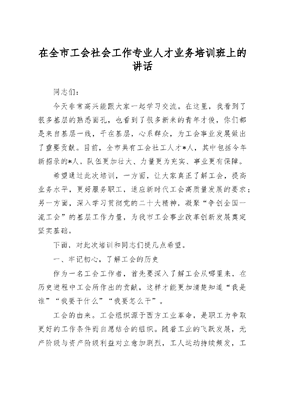在全市工会社会工作专业人才业务培训班上的讲话.doc