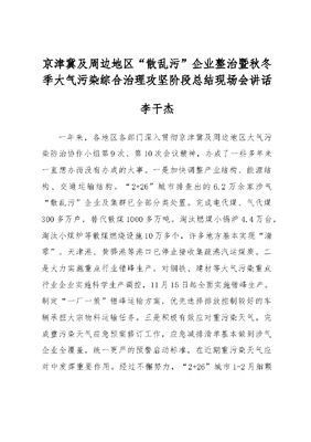 李干杰:京津冀及周边地区“散乱污”企业整治暨秋冬季大气污染综合治理攻坚阶段总结现场会讲话.docx