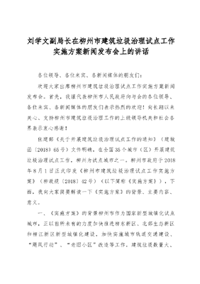 刘学文副局长在柳州市建筑垃圾治理试点工作实施方案新闻发布会上的讲话.docx