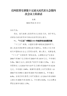 在阿拉善左旗第十五届人民代表大会第四次会议上的讲话.docx