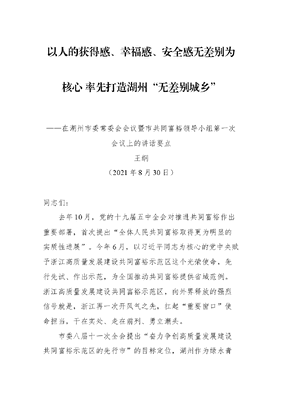 在湖州市委常委会会议暨市共同富裕领导小组第一次会议上的讲话要点.docx