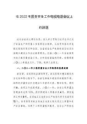 在2022年质量安全工作电视电话会议上的讲话.docx