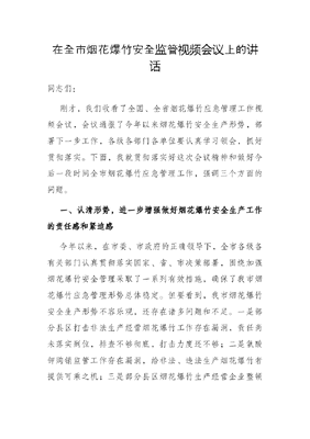 在全市烟花爆竹安全监管视频会议上的讲话.docx