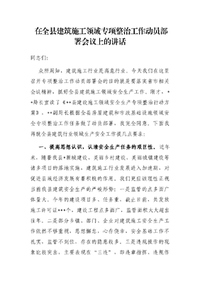 在全县建筑施工领域专项整治工作动员部署会议上的讲话.docx