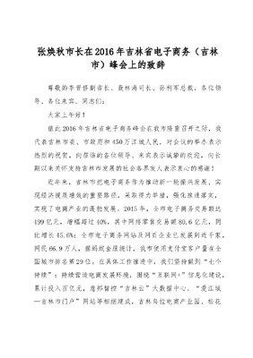 张焕秋市长在2016年吉林省电子商务(吉林市)峰会上的致辞.docx