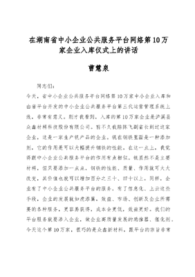曹慧泉在湖南省中小企业公共服务平台网络第10万家企业入库仪式上的讲话.docx