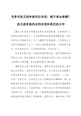 毛泽东抗日战争胜利后讲话:桃子该由谁摘?.docx