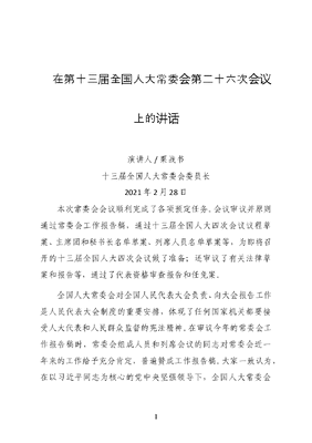 栗战书在第十三届全国人大常委会第二十六次会议上的讲话.docx