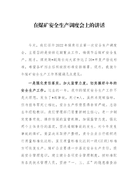 在煤矿安全生产调度会上的讲话.docx