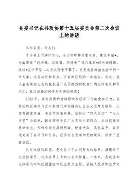 县委书记在县政协第十五届委员会第二次会议上的讲话.docx