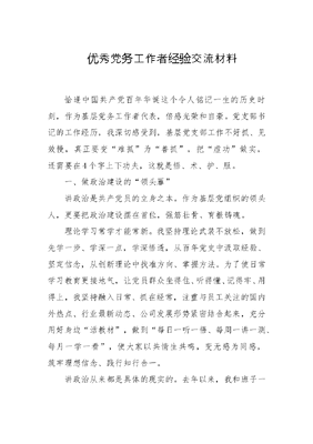 优秀党务工作者经验交流材料.doc