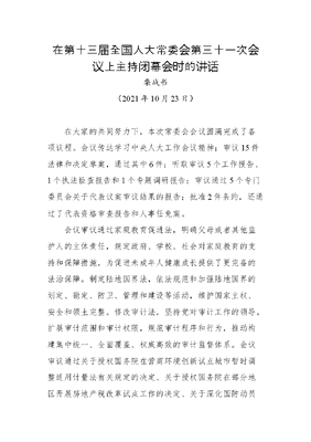 在第十三届全国人大常委会第三十一次会议上主持闭幕会时的讲话.docx