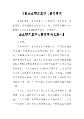 (3篇)企业职工篮球比赛开幕词.docx