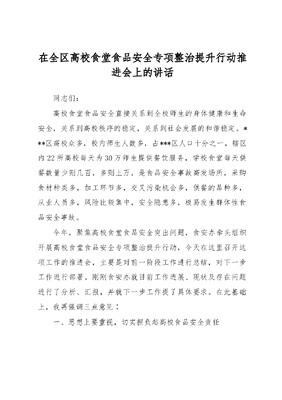 在全区高校食堂食品安全专项整治提升行动推进会上的讲话.docx