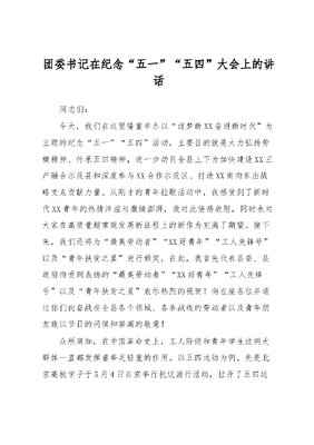 团委书记在纪念五一、五四大会上的讲话.docx