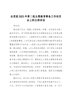 在党组2023年第二批主题教育筹备工作动员会上的主持讲话.docx