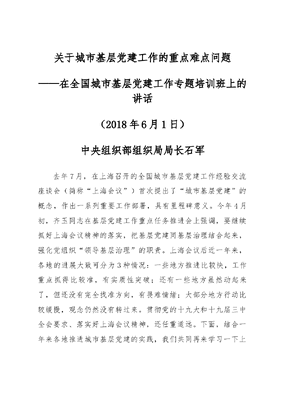 中央组织部组织局局长石军在全国城市基层党建工作专题培训班上的讲话.docx