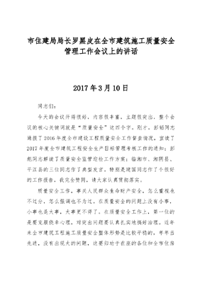 市住建局局长罗黑皮在全市建筑施工质量安全管理工作会议上的讲话.docx