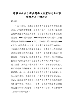 慈善协会会长在县慈善大会暨助力乡村振兴推进会上的讲话.docx